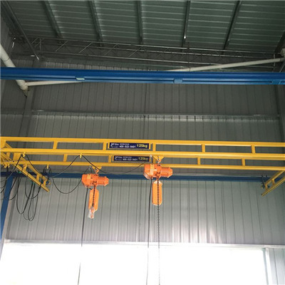 很多對起重機不認識的人,在聽見kbk起重機時,都較為困惑,什么叫kbk。其實,kbk是軟性梁式起重機的通稱,起重量通常為2噸,是一種源自歐州的工位起重機設計。kbk由懸架設備、軌道、道岔、行駛小車、電葫蘆、移動共電裝置(滑線)及其控制設備組合成,只需懸掛在廠房頂或梁架上便可保持原材料的空中直接運輸。1、組合