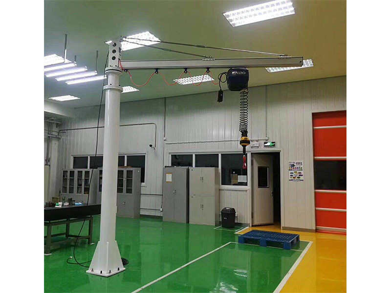 定柱式旋臂起重機(jī)配合了可靠性高的曄創(chuàng)UPMAX品牌AMH型環(huán)鏈電動(dòng)葫蘆尤其適用于短距離,使用頻繁,密集性吊運(yùn)作業(yè),具有高效、節(jié)能、省事、占地面積小,易于操作與維修等特點(diǎn)。環(huán)鏈電動(dòng)葫蘆有起升和在橫梁上往返運(yùn)行的功能,旋臂梁可由回轉(zhuǎn)裝置上的的減速機(jī)帶動(dòng)滾輪進(jìn)行回轉(zhuǎn)運(yùn)動(dòng),電器控制箱安裝在環(huán)鏈葫蘆上。